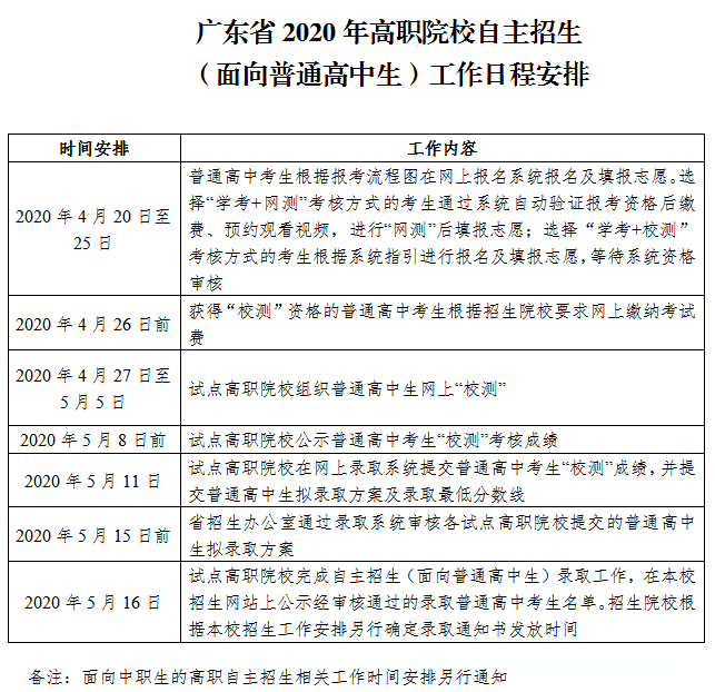附件:广东省2020年高职院校自主招生(面向普通普通高中生)工作日程安排