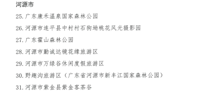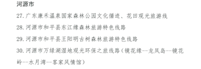 河源共有六条森林旅游特色线路和七个森林旅游新兴品牌地入选。