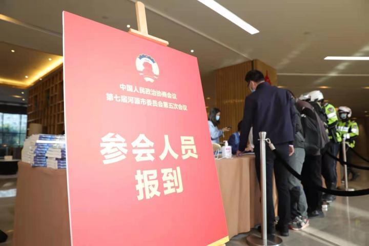 现场工作人员比对前来报到的委员和列席人员的资料,签到、领取会议资料、佩戴委员证、整理材料,整个流程规范有序。在分发的会议材料袋内,还为每位参会人员准备了一次性医用口罩包等防疫用品。