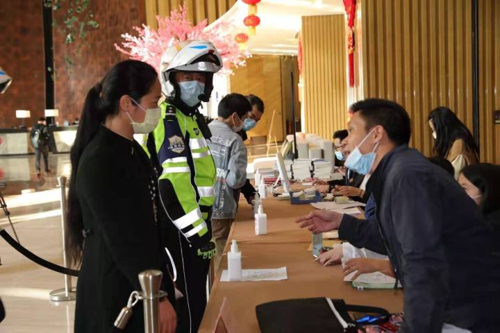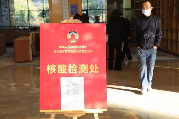 昨天上午,记者在住地酒店之一的希尔顿逸林酒店大堂看到,宾馆大堂里红外体温检测系统上实时显示每一位进出人员的体温。在工作人员的引导下,前来报到的政协委员佩戴口罩要通过出示健康码、测量体温、过安检、再一次核酸检测等一道道“关卡”,有条不紊地办理报到手续。