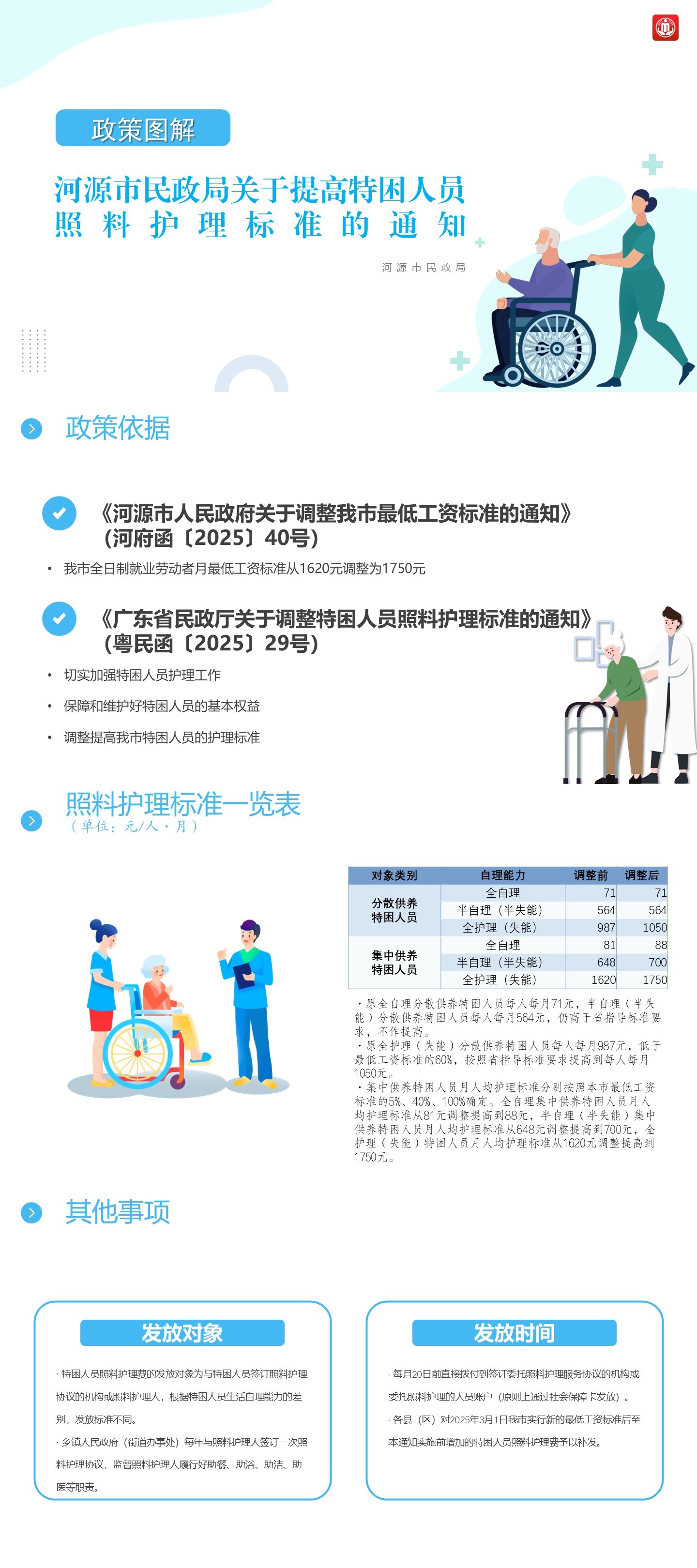《河源市民政局关于提高特困人员照料护理标准的通知》政策图解