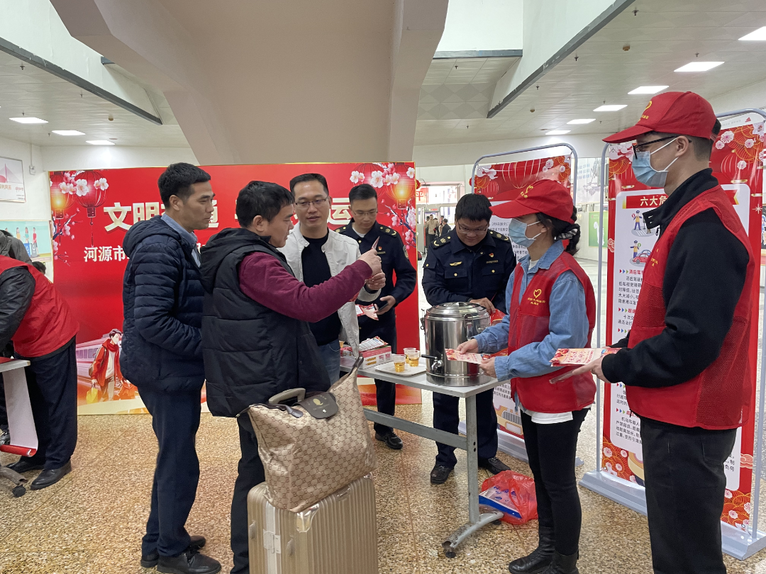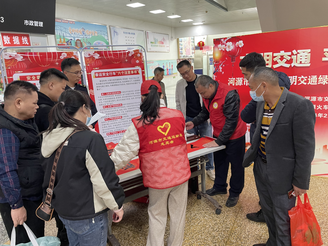 为进一步提高广大群众的安全出行、文明出行意识,打造“平安、畅顺、暖心”春运,2月5日,河源市交通运输局在河源火车站组织开展了“文明交通 平安春运”2024年文明交通绿色出行专题宣传活动。