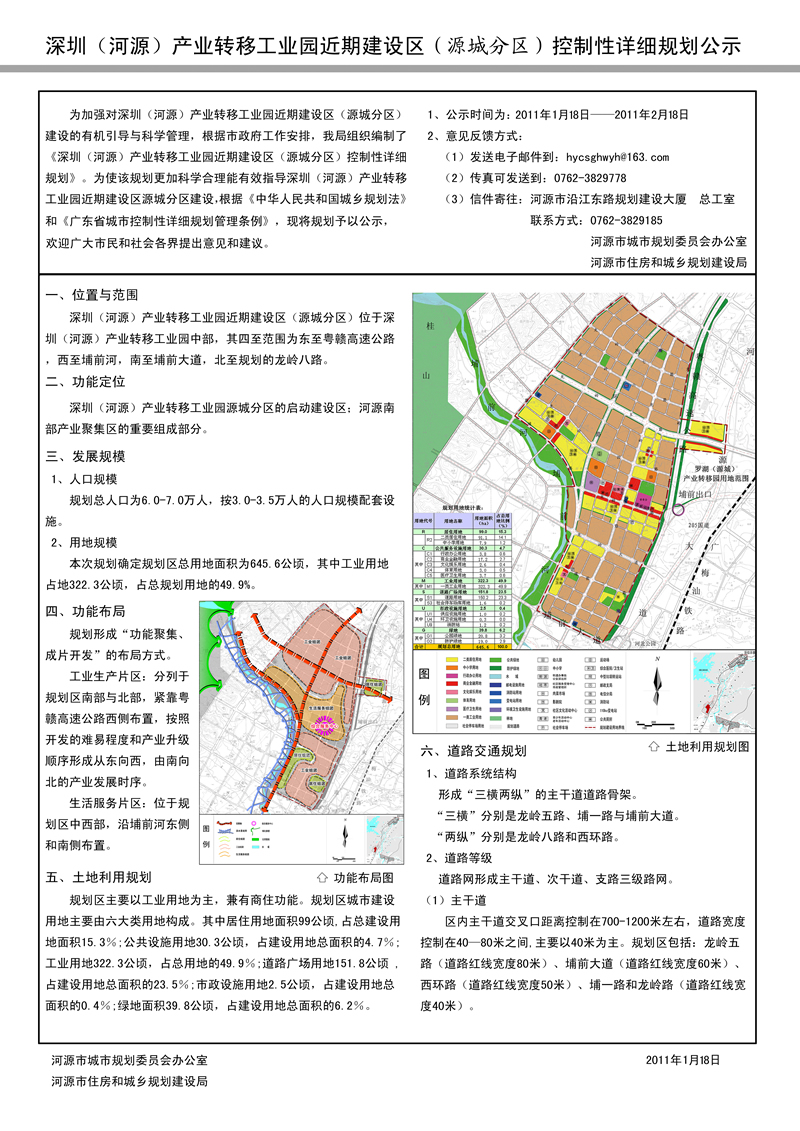 深圳(河源)产业转移园源城分区控制性详细规划规划公示