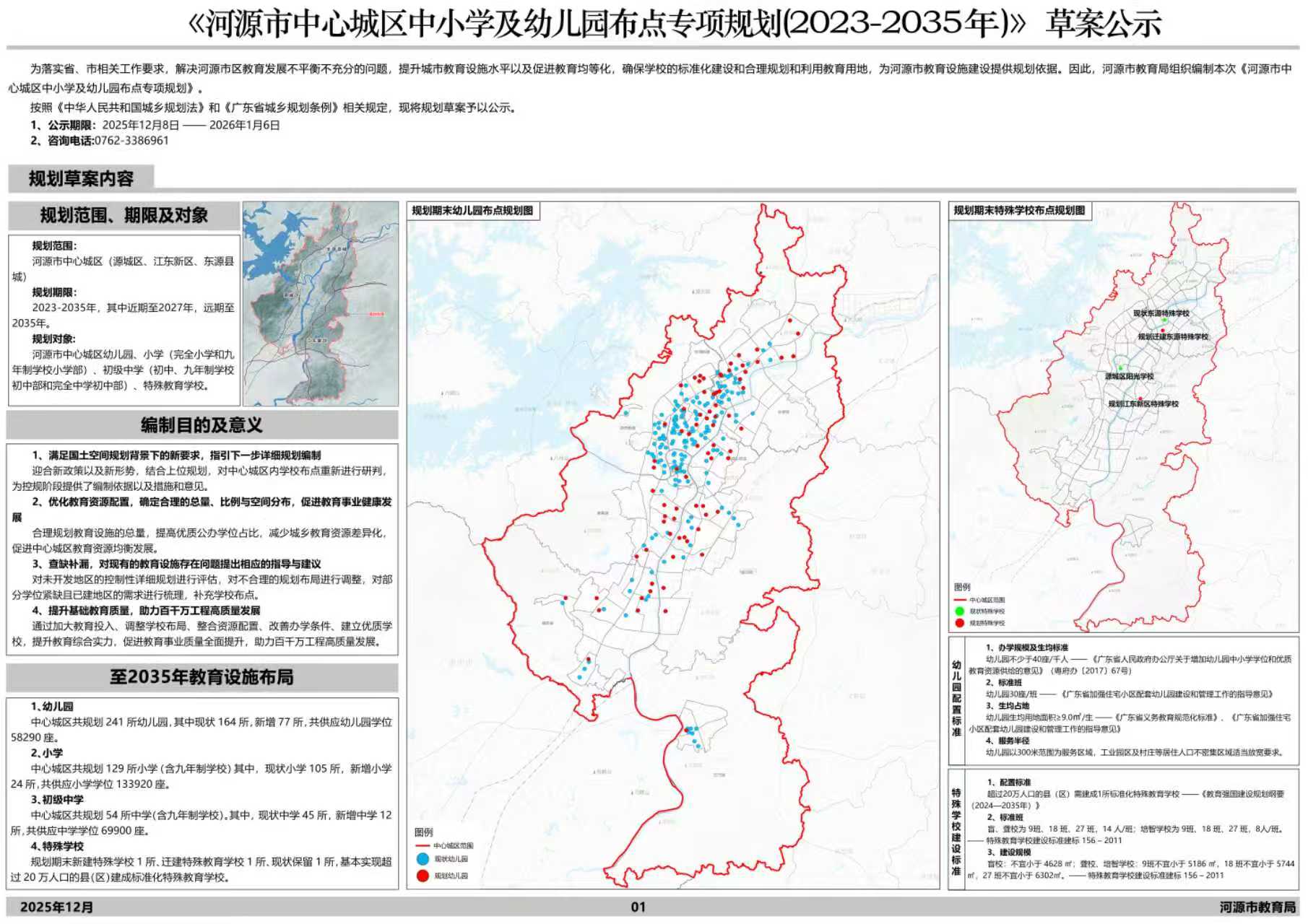 《河源市中心城区中小学及幼儿园布点专项规划(2023-2035年)》草案公示