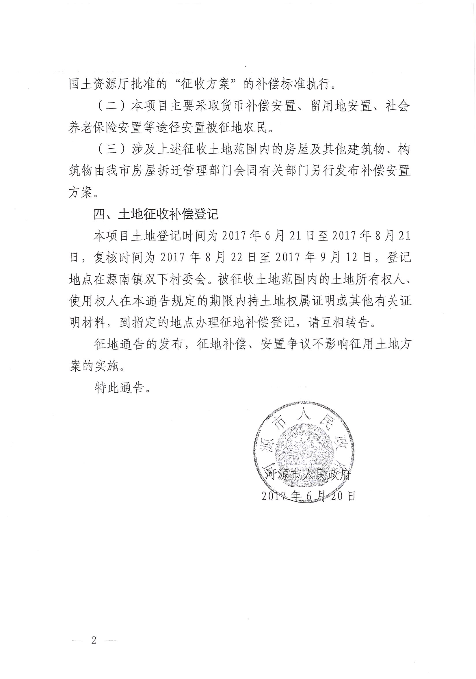 河源市人民政府关于河源市城区2016年第一批次土地征收的公告