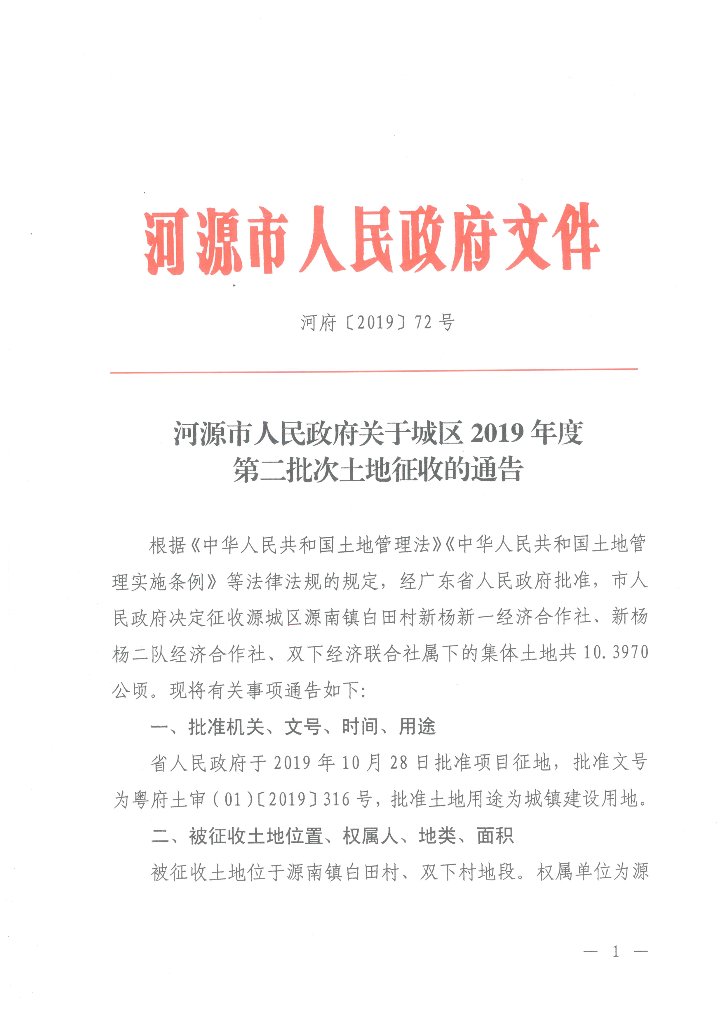 河源市人民政府关于城区2019年度第二批次土地征收的通告