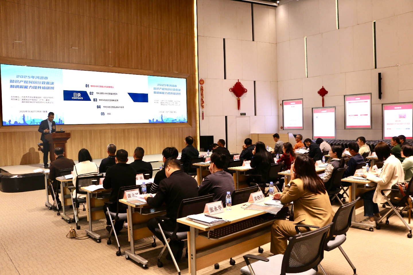 为推进知识产权保护体系建设,提升知识产权纠纷行政裁决、调解人员队伍的专业能力,11月27日-28日,河源市市场监督管理局举办2025年河源市知识产权纠纷行政裁决和调解能力提升培训班,市市场监管局二级调研员伍志勇参加培训并作开班讲话。